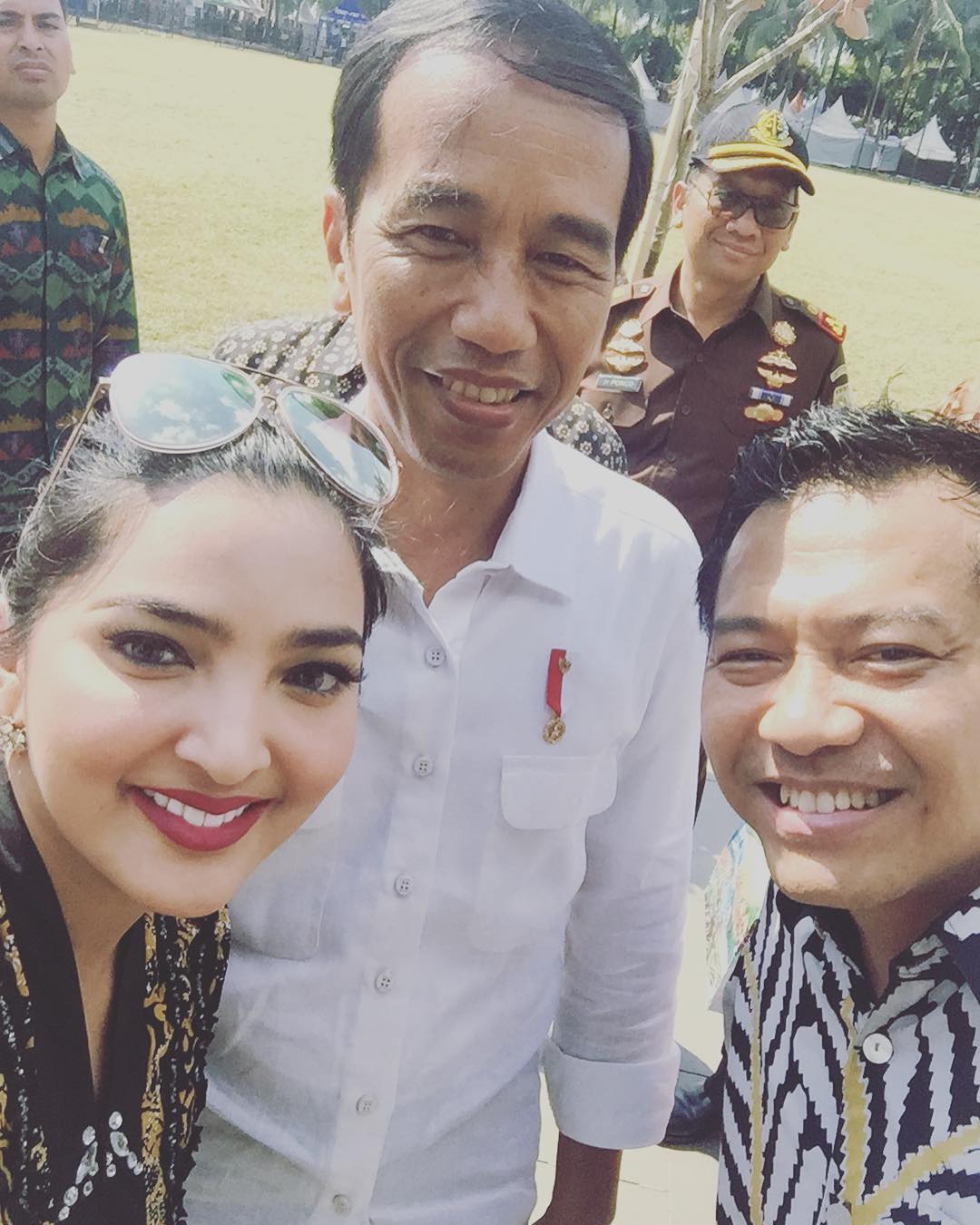 Sebagai anggota pemerintahan, keduanya berkesempatan nih untuk berselfie ria bareng Presiden RI, Joko Widodo.
