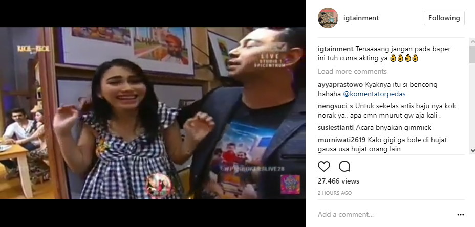 Postingan tersebut pun sontak membuat heboh netizen. Mereka bahkan menyebut Ayu Ting Ting mudah terbawa perasaan dengan gombalan Raffi Ahmad. "Ya allah baper amat lo kampungggg ketara bgt lo kebaperan nyengir lebar gitu deyyyyyy najis!!!!" sindir netizen. "Akting doang jangan geer apa lagi masukin hati...istrinya lebih cantik," sindir lainnya.