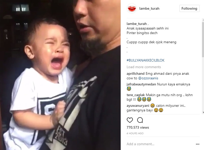 Cara unik Ahmad Dhani menenangkan tangisan putra bungsunya itu malah semakin membuat netter malayangkan hujatan padanya dan Mulan Jameela.