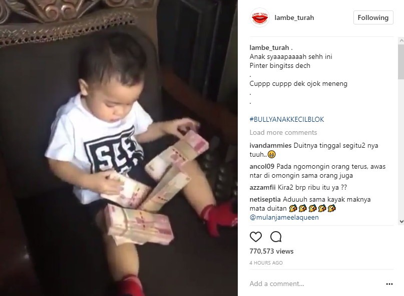Mengetahui hal tersebut, tak sedikit netizen yang malah melayangkan sindiran pada Mulan. "emaknya bilang ke anknya co matre,lha dlm hati maknya ngmng "kalo gw cew matre"," sindir netizen. "Aduuuh sama kayak maknya mata duitan @mulanjameelaqueen," sindir lainnya.