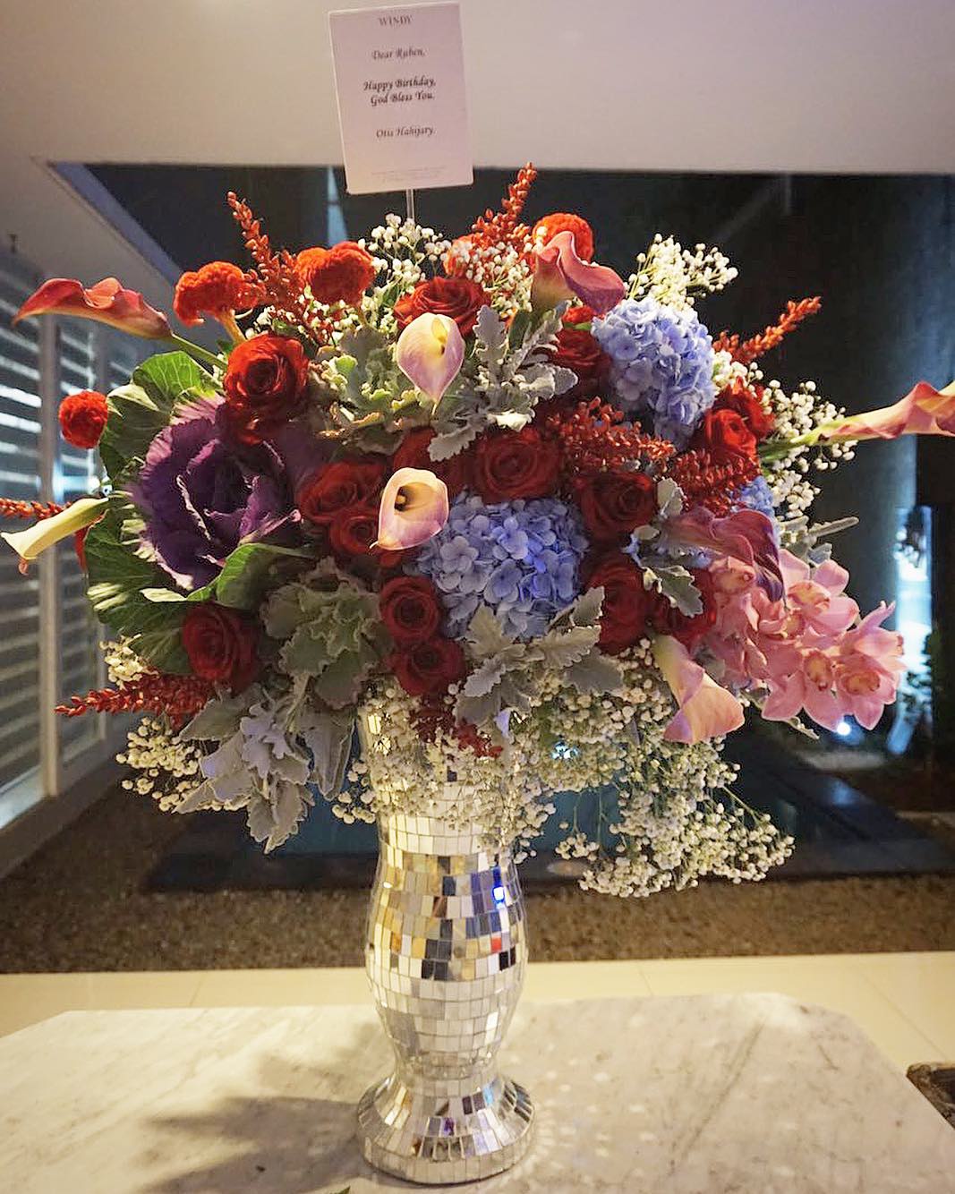 Hadiah pun berdatangan ke rumah Ruben. Salah satunya bunga dari Otis Hahijary ini. Well, selamat ulang tahun, Ruben Onsu.