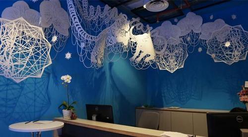 Saat masuk ke kantor, pengujung akan disambut oleh instalasi kertas berbentuk harimau dan kerbau karya Rudy Atjeh yang digantung di belakang meja resepsionis. Hal tersebut bertujuan untuk mencerminkan semangat dan identitas gigih yang dibangun oleh Indonesia.
