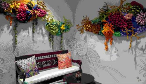 1. Karya Seniman Lokal di Belakang Meja Resepsionis
