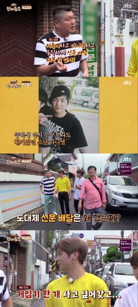 Didepan MC Kang Ho Dong dan Park Ji Hoon yang juga tampil di acara tersebut, Kang Daniel yang berjalan melewati area pertokoan yang menjual koran dan majalah, dia teringat akan masa lalunya tersebut. Sebelum Kang Daniel mengungkapkan pengalamannya menjadi loper korean, terlebih dulu Kang Ho Dong mengajukan sebuah pertanyaan. "Apakah dari kalian (Kang Daniel dan Park Ji Hoon) pernah bekerja sebagai tukang koran?" tanya Kang Ho Dong.