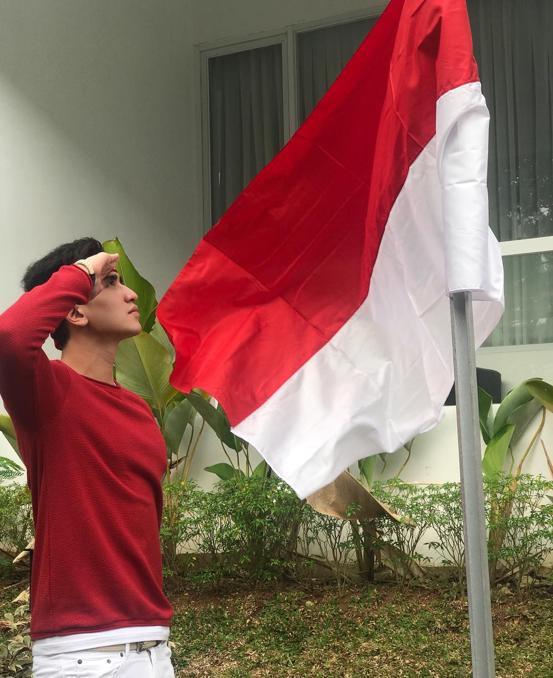 Verrell Bramasta memang tak melakukan upacara di Istana Negara, namun ia melakukan penghormatan terhadap sang saka merah putih, lho!