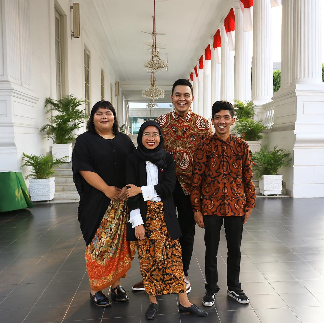 Penyanyi Tulus nggak mau ketinggalan, dong. Dengan dibalut batik, Tulus ikutan upacara bareng Bapak Presiden.