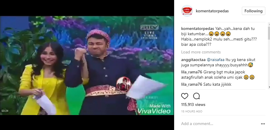 Entah sengaja atau tidak, hal tersebut membuat dua selebritis yang terlibat skandal itu semakin mendapat cibiran. "Kyak sengaja yg nyenggol kesempatan," sindir netizen. "Amit2 dah raffi udh dpt istri semok eeh malah doyanny yg tipiss.." sindir lainnya. "gw gak paham lgi sama mkhluk 2 ini, bener2 sama bebalnya. smoga disadarkan yaa, rezeki suami trgantung ridho istri, jdi klo uda murka tinggal ampas nya aja." timpal lainnya.