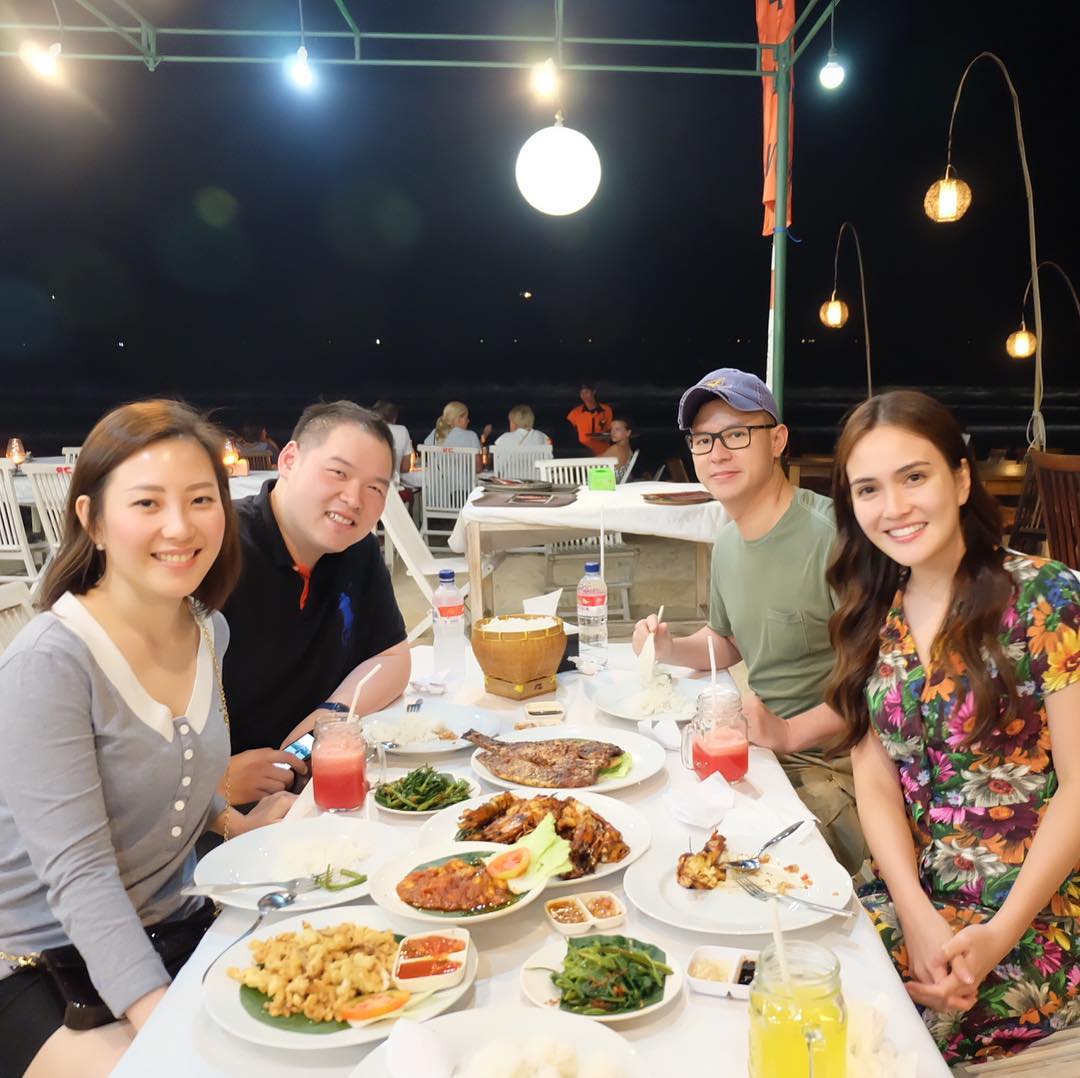 'Kencan pertama' mereka dihabiskan dengan makan malam bersama sahabat di pinggir pantai seperti ini.