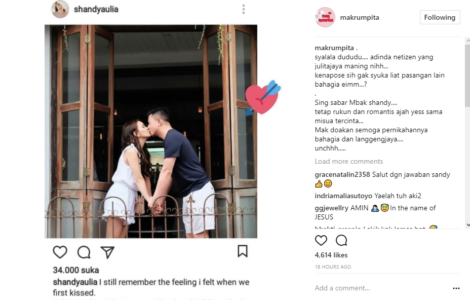 Berbagai tanggapan positif dilayangkan netizen pada Shandy Aulia. Namun, dari banyaknya komentar positif itu, rupanya salah satu netter malah menuding Shandy Aulia pamer kemesraan. Tak hanya itu, netter itu pun memprediksi bahwa Shandy Aulia akan segera bercerai.