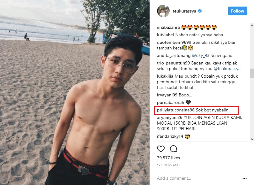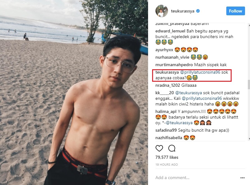 Merasa dirinya tak berbuat salah, Rassya pun melakukan pembelaan. "@prillylatuconsina96 sok apanyaa cobaa?" sahutnya sambil mengimbuhkan emoji menangis dan tertawa.