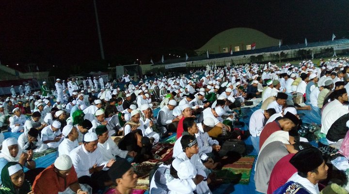 Kanal247.com - Sabtu (19/8), massa Front Pembela Islam (FPI) menggelar milad yang ke-19 di Stadion Kamal Muara, Penjaringan, Jakarta Utara. Acara tersebut diawali dengan salat subuh berjamaah.