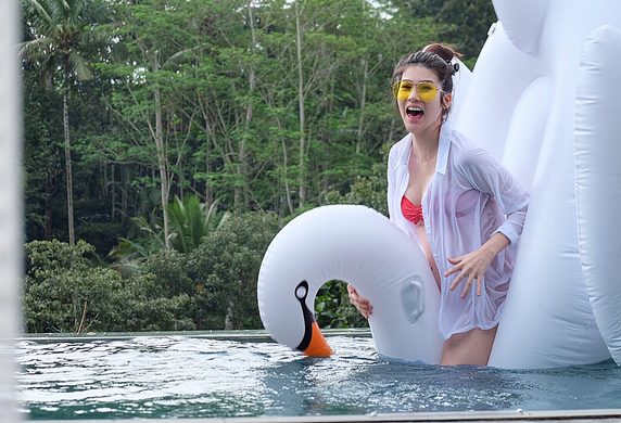 Cantik dan seksi, Stevie Agnecya menikmati baby moon di Bali bersama Giorgino Abraham dan Irish Bella.