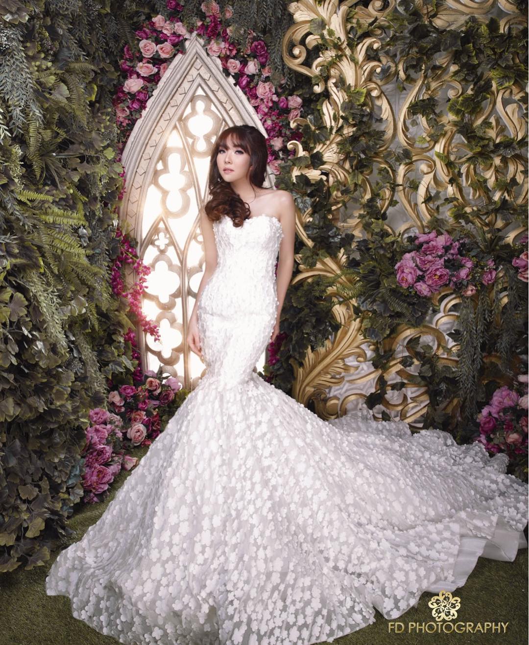 Bak keluarga kerajaan, Gisella Anastasia tampil mempesona dalam balutan gaun putih yang mewah nan elegan.