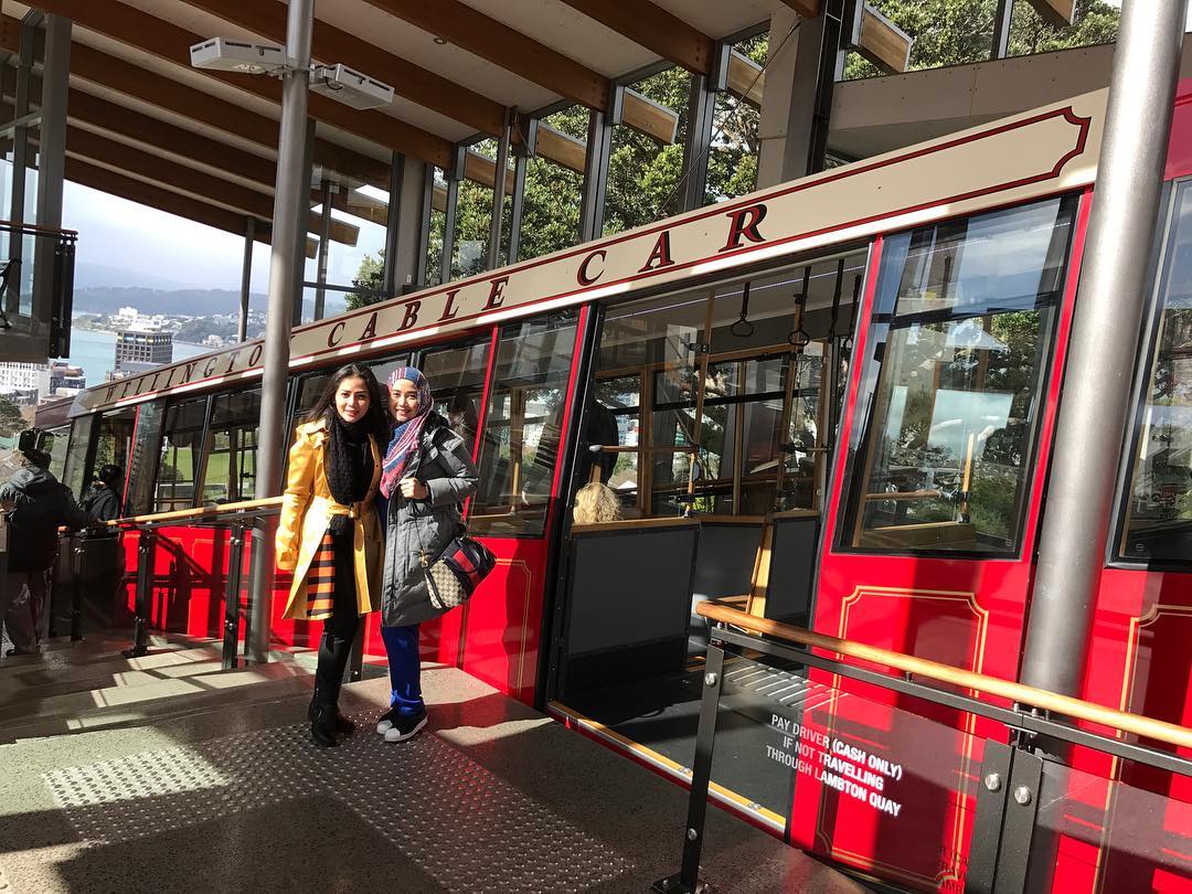 Ia juga menjajal untuk menaiki transportasi Wellington Cable Car bersama rekan dan sahabatnya.