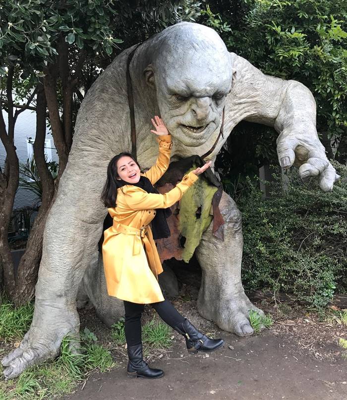 Janda cantik ini juga menyempatkan diri untuk berpetualang di kawasan Weta Cave.