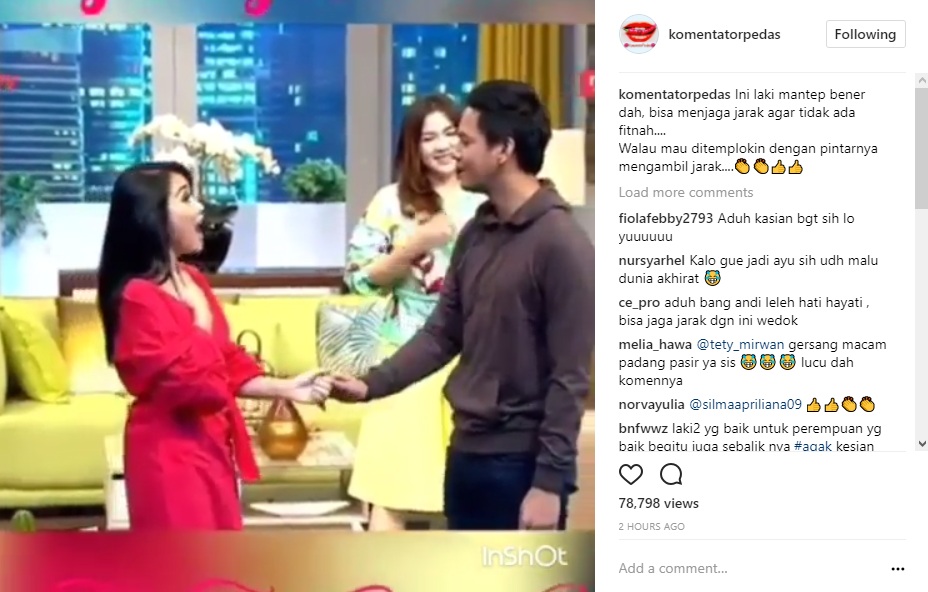Adegan yang diposting melalui akun Instagram @komentatorpedas itu pun sukses menjadi sorotan. Dengan backsound lagu Anang Hermansyah dan Ashanty yang berjudul "Jodohku", keduanya pun saling berpegangan tangan.