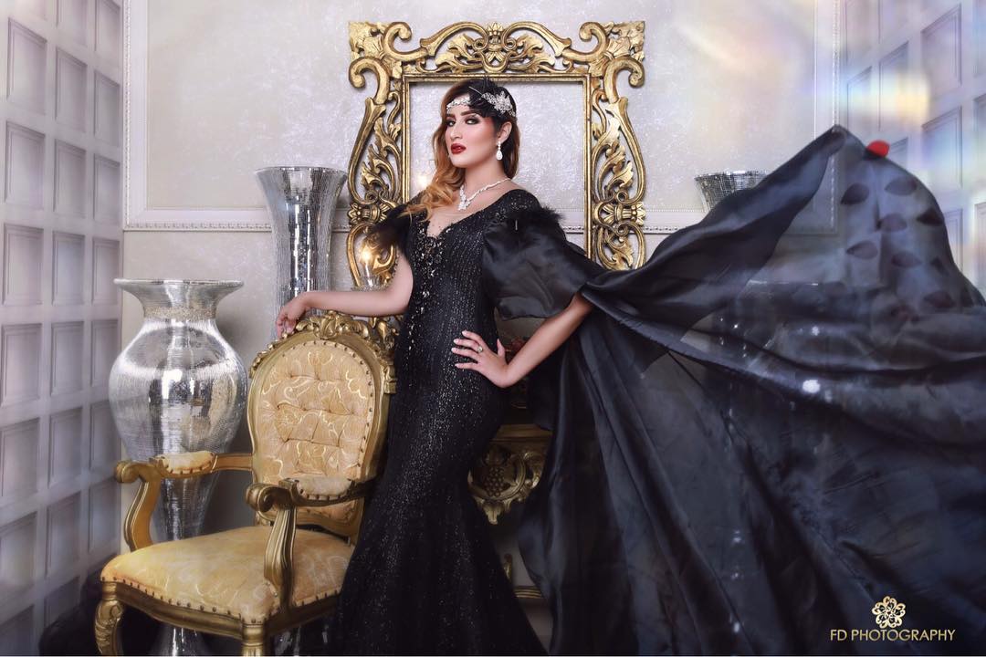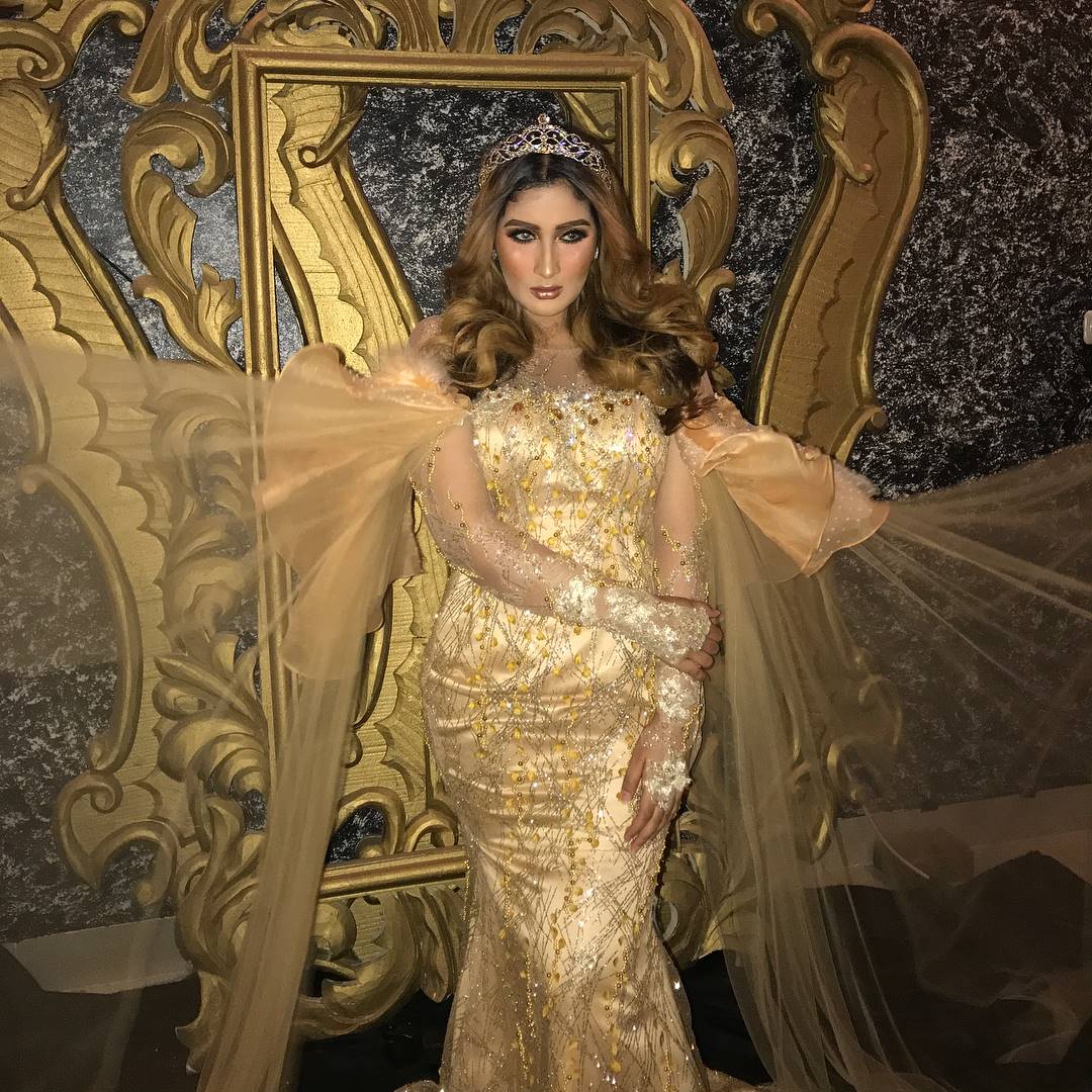 Pemotretan kedua mengusung warna emas sebagai warna utama. Di sini Tania Nadira berpose bak ratu.