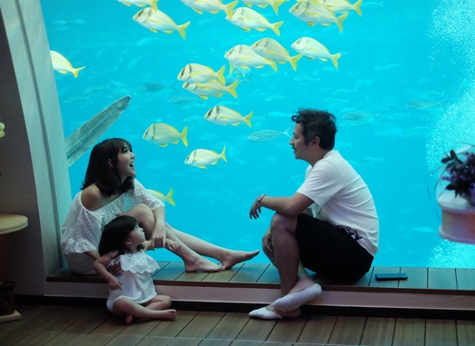 FOTO : Pengalaman Seru Keluarga Gading Marten, Tidur di Hotel Bawah Laut Bersama Ikan