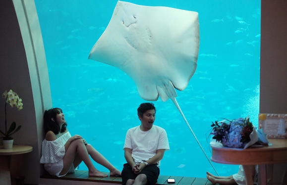 Suites tersebut sengaja dipilih agar mereka dapat merasakan sensasi tidur bersama ikan-ikan di laut.