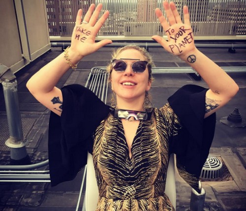 Lady GaGa menunggu kehadiran gerhana matahari total sembari duduk santai di balkon apartemennya. Lewat akun Instagramnya, Gaga menggunggah sebuah foto mengangkat kedua tangannya yang bertuliskan "bawa aku ke planetmu".