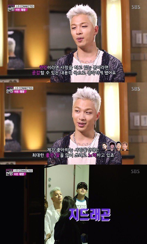Tepat di hari ulang tahunnya itu, alih-alih sibuk bekerja G-Dragon malah mendatangi tempat latihan Taeyang untuk berlatih. Hal itu diungkapkan Taeyang di acara "One Night of TV Entertainment" yang tayang 22 Agustus lalu. "Jujur, aku sama sekali tidak tahu tentang itu (kedatangan G-Dragon ke tempatnya). Dia kemudian datang dan mengejutkanku. Aku sangat terharu oleh perbuatannya itu," kata Taeyang.