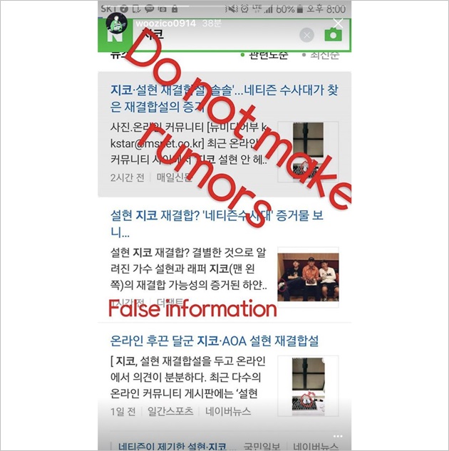 "Itu adalah sebuah keputusan untuk tidak menyakitinya (Seolhyun). Aku tak pernah (mengunggah) itu untuk memuaskanmu, itu sama sekali bukan urusanmu. Jika kau lagi-lagi memberikan hinaan padaku, aku akan mengambil langkah hukum," tulis Zico. "Jangan berani menghapus ID dan jika kau ada protes, mari bertemu tatap muka dan katakan padaku. Lain kali lebih hati-hati," tulis Zico lagi.