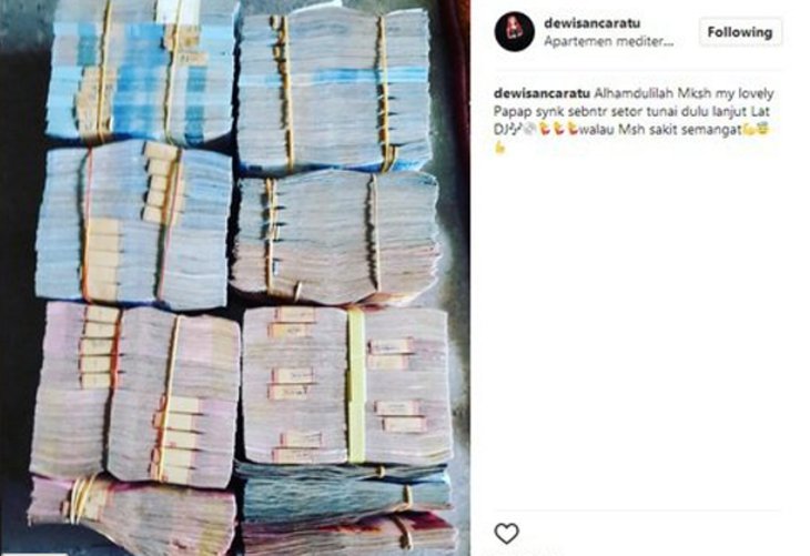 Dewi Sanca mengakui bahwa uang segepok yang ia pamerkan merupakan uang pemberian dari sang Bupati. Ada hubungan apa?