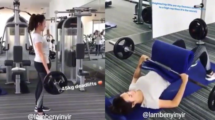 "Weighted hip lifts are my faveeez (until it gone to a high rep then itβs the worst)," tulis Raisa pada videonya. Melihat unggahan Raisa melakukan gerakan seperti itu, para netizen pun mulai berkomentar jahil.