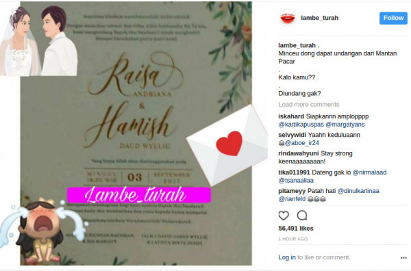 Dalam undangan berwarna putih tersebut, nama Raisa dan Hamish terukir sebagai calon mempelai. Waktu pelaksanaan pernikahan digelar pukul 18.30 WIB. Apakah kamu sudah siap menyambut Hari Patah Hati Nasional pada tanggal 3 September nanti?