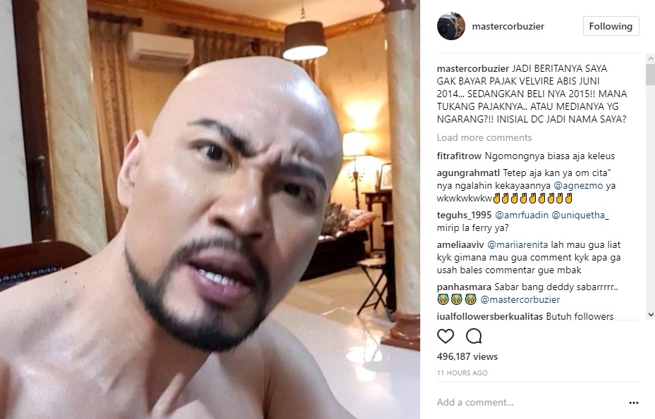 Melalui Instagram pribadinya, Deddy pun memberikan klarifikasinya. "Jadi dari kemaren sampai tadi itu saya dikejar-kejar sama media, karena ada selebriti dengan inisial DC yang katanya ngga bayar pajak. Well, to confirm to you if you're media, It is not me. Ok?" ujar Deddy.