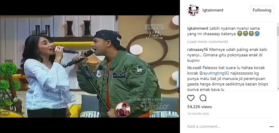 Sambil saling menatap, Raffi dan Ayu lancar menyanyikan lagu duet itu. Bahkan, meskipun Ayu Ting Ting bukanlah penyanyi aslinya, lirik lagu yang dilantunkan ibu satu anak itu tak ada yang salah sampai pada bagian akhir.