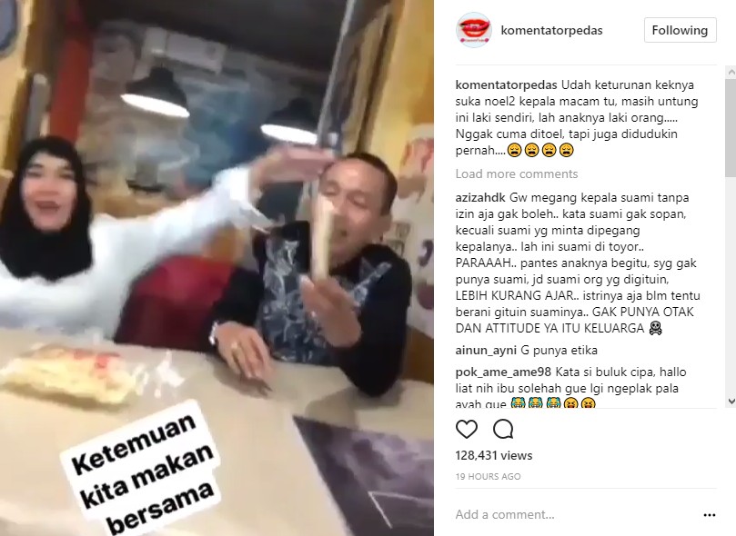 Seperti belum lama ini, aksi ibu Ayu Ting Ting, Umi Kalsum, pada sang suami, Abdul Rozak, menuai gunjingan netizen. Pasalnya, Umi Kalsum kepergok tengah memukul kepala Abdul Rozak.