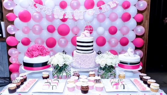 Rekan-rekan Olla sendiri memilih design pesta yang simpel namun meriah yakni balon berwarna putih dan pink yang cantik.