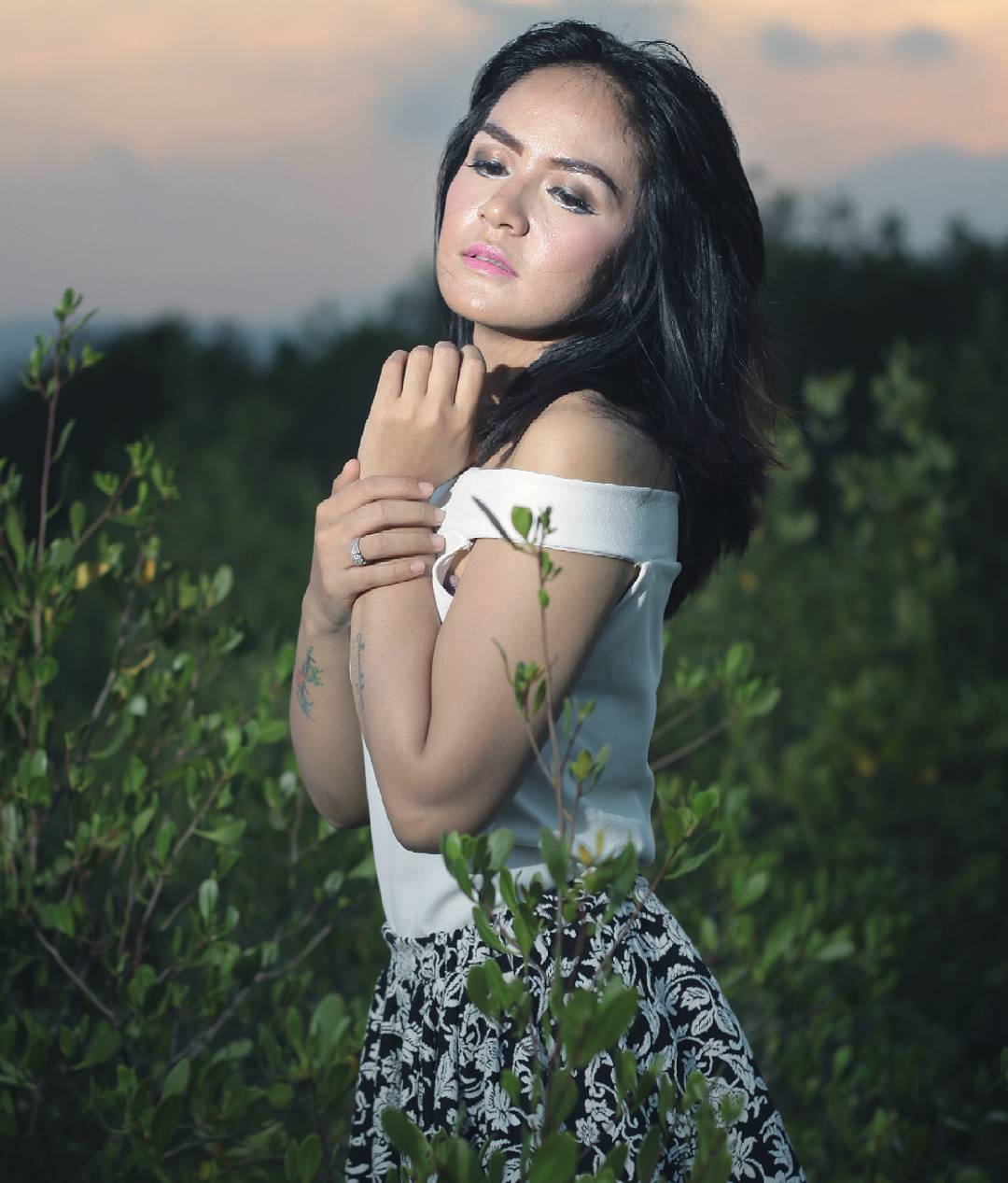Kini Chaca juga terbiasa mengenakan baju yang lumayan terbuka untuk pemotretan seperti ini.