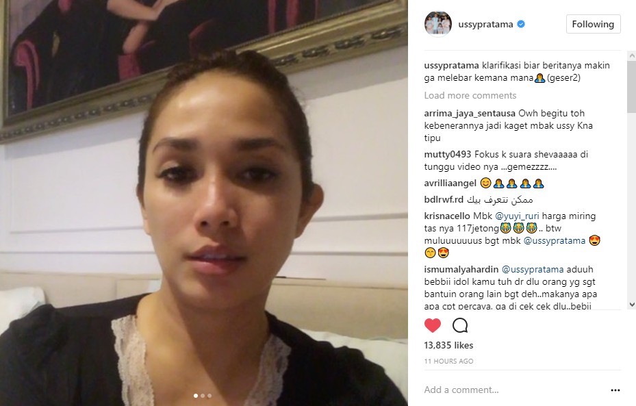 Tak ingin berita itu melebar kemana-mana, Ussy pun memberi klarifikasi secara terebuka melalui postingan di akun Instagram pribadinya. "Temen-temen, mau mengklarifikasi berita yang lagi rame dari tadi sore. Jadi di situ tertulis katanya aku tertipu sama online shop. Sebenernya itu agak salah ya. Karena aku tidak tertipu sama online shop," kata Ussy mengawali klarifikasinya.