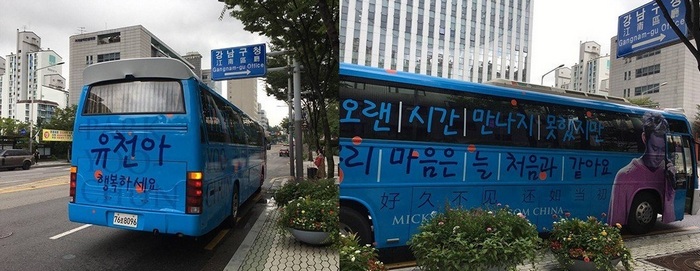 Untuk merayakan kepulangan Yoochun, fans memasang iklan di badan bis. Kendaraan itu melaju di kawasan perkantoran Gangnam-gu, tempat dimana Yoochun bertugas selama wajib militer. Penampilan bis itu makin menarik perhatian karena tidak hanya berwarna biru saja, melainkan isi pesan yang tertulis di badannya.