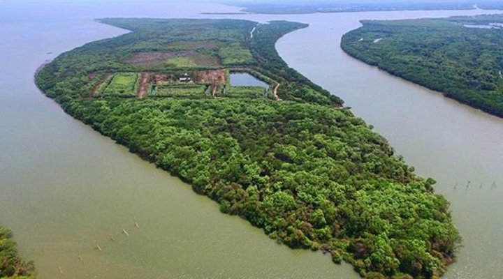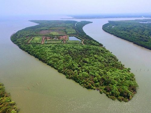Setelah beberapa tahun berlalu, endapan lumpur buangan ini membentuk sebuah delta di muara sungai. Endapan seluas 80 hektar ini rupanya cukup kuat untuk dipijak. Awalnya pulau ini hanya hamparan gersang, namun warga berinisiatif menanam beberapa tanaman seperti bakau, yang mana ternyata bisa tumbuh subur, sehingga pulau yang kemudian diberi nama pualu Sarinah ini menjadi pulau kecil yang cantik.