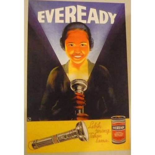 Iklan baterai Eveready zaman dulu lucu juga ya. Modelnya ibu-ibu yang dilukis dan mengarahkan senter ke wajahnya. Jadi seperti mau nakutin orang kan kalau begitu.