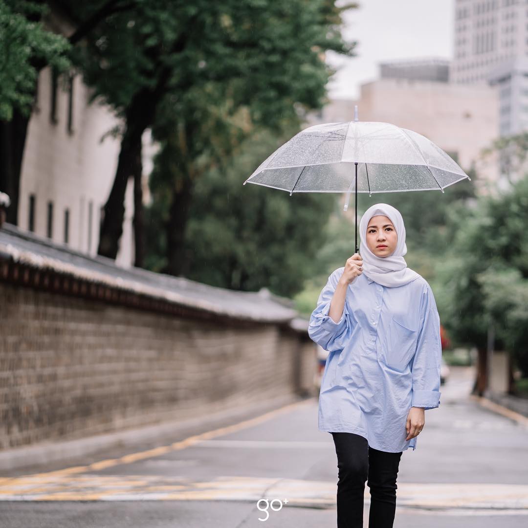 Natasha Rizki mendatangi lokasi syuting drama 'Goblin', mulai dari rumah hingga berpose dengan payung milik Goblin.