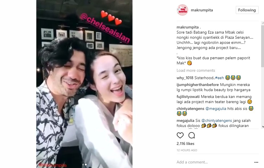 Tak hanya itu, postingan lainnya menunjukkan Reza Rahadian tengah merangkul mesra Chelsea. Sambil menggenggam tangan Reza, Chelsea dan pria 30 tahun itu saling memamerkan pose lucu mereka di depan kamera menggunakan aplikasi Boomerang di Instagram Story.