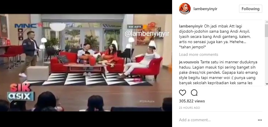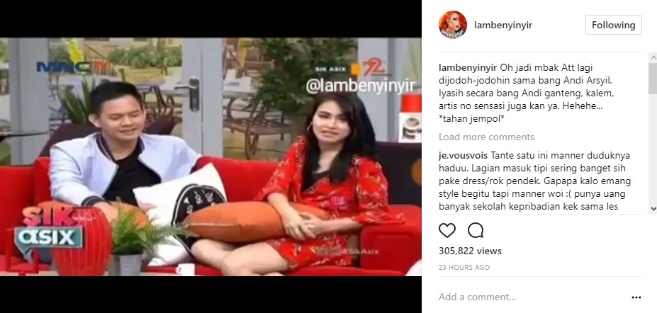 Posisi dekat dengan Andi Arsyil, gaya duduk Ayu Ting Ting malah buat netter gagal fokus.