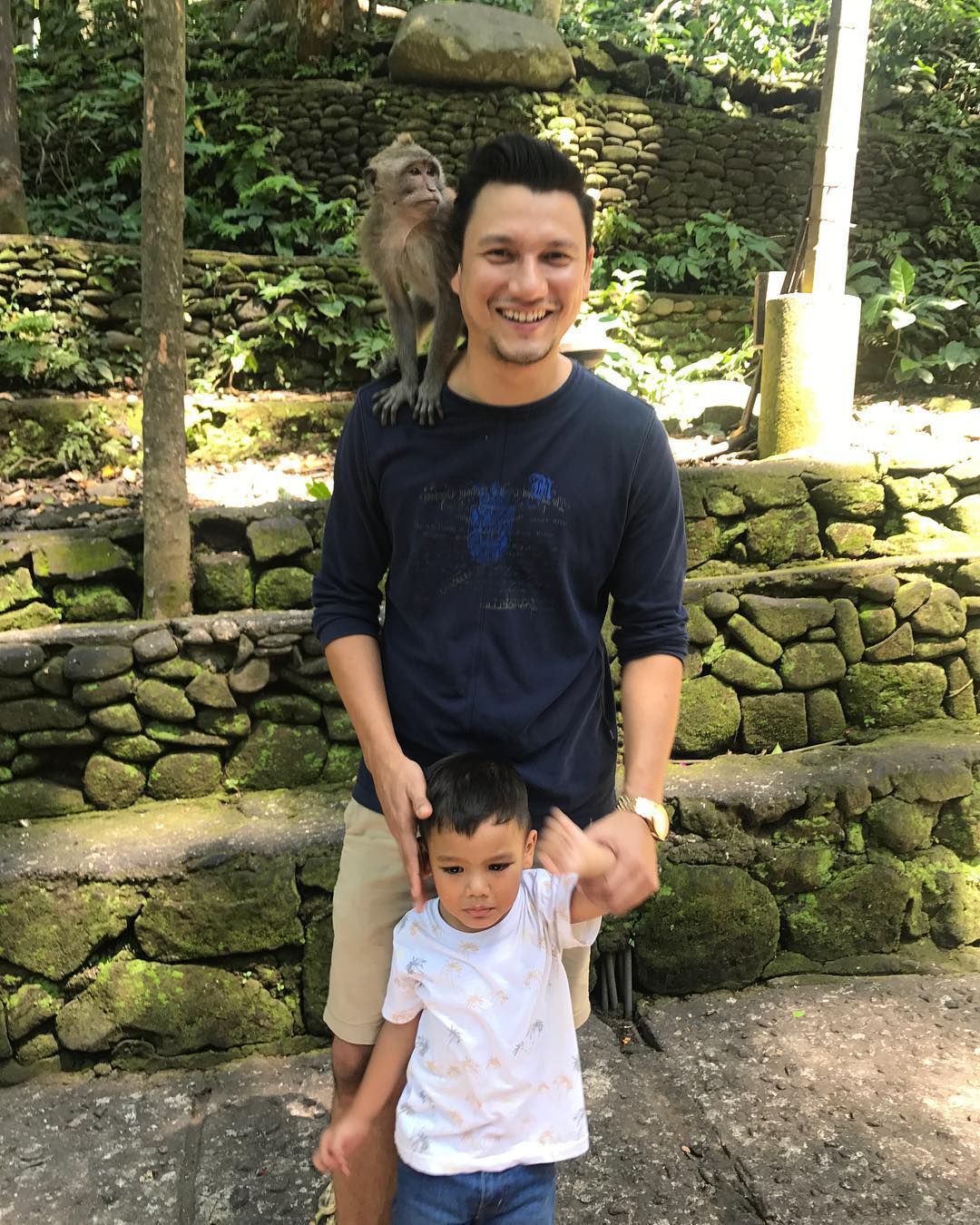 Selain Bedugul dan Finns Beach, Titi dan Tian mengajak anaknya untuk 'berkenalan' dengan monyet di Sacred Monkey Forest.