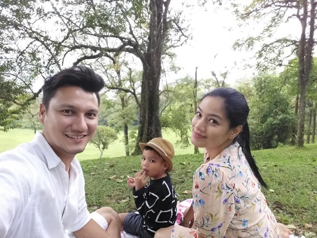 Mereka bertiga pun kemudian memilih piknik di kawasan hijau tersebut bersama Baby J, nama anak kedua Titi kelak.