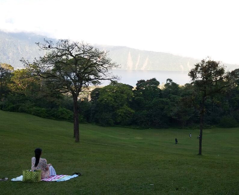 Jika pantai menjadi wisata andalan Bali, Titi Kamal justru memilih pemandangan hijau sebagai lokasi babymoonnya. Ia santai berpiknik di Bedugul Botanical Garden.