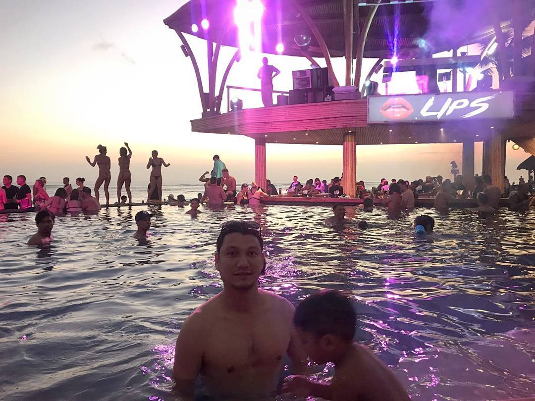Namun Christian Sugiono tak mau melewatkan pantai di Bali. Dia bareng Juna ikut pesta pantai di Finns Beach Club.