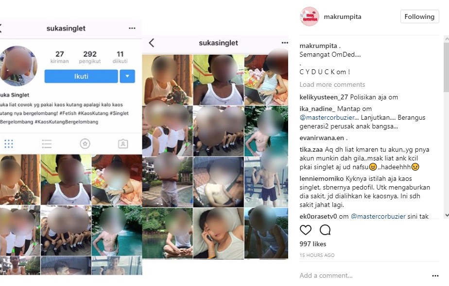 Tak sampai disitu, beberapa waktu lalu, putra Deddy Corbuzier, Azkanio Nikola Corbuzier disebut-sebut menjadi sorotan oknum yang diduga pedofilia. Hal tersebut diketahui usai foto Azka masuk dalam salah satu pengguna Instagram yang diduga seorang pedofil. Beberapa foto anak lelaki lain yang hanya mengenakan kaus dalam pun ikut masuk dalam laman Instagram tersebut.