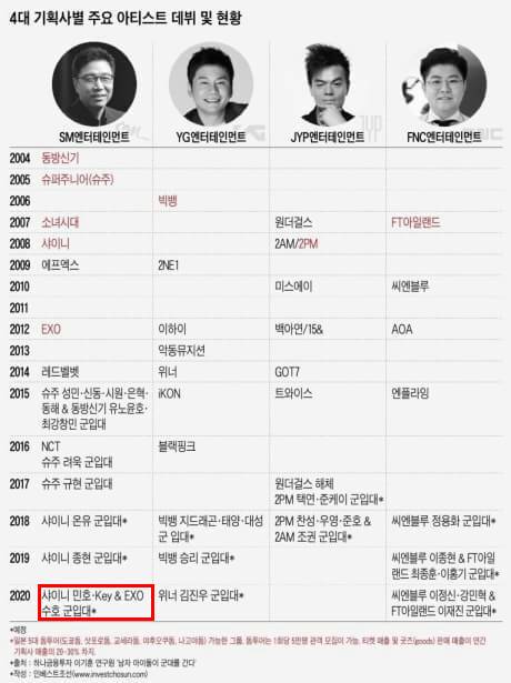 Kabar tersebut beredar setelah ada sumber yang merilis jadwal wajib militer untuk artis Korea dari agensi besar.