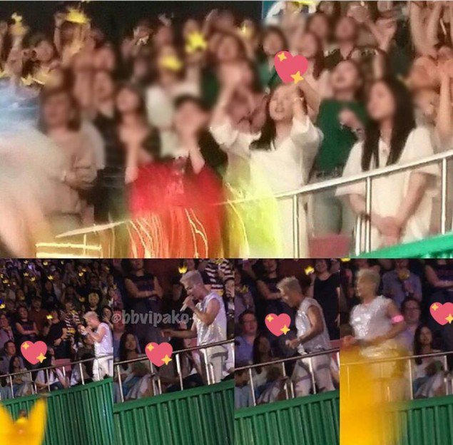 Menariknya, tahu konsernya ditonton langsung oleh sang bos dan kekasih pujaan hati, Taeyang pun langsung bereaksi. Ditengah-tengah penampilannya, Taeyang menyempatkan diri menuju barisan kursi mereka dan memberikan balasan senyum penuh arti. So sweet.