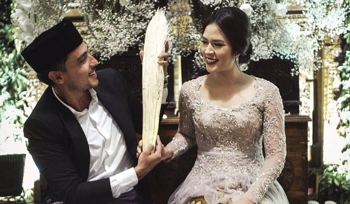 Berbeda dengan Hamish Daud, Raisa tampil anggun dengan balutan kebaya yang dipadukan dengan kain batik.
