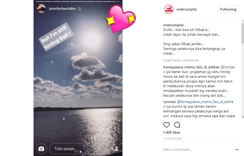 Meskipun ditimpa musibah yang meresahkan hati, Jennifer tetap mengaku rasa cintanya pada Bali tak pernah hilang. "but I'm still loving Bali !" tutup wanita yang tergabung dalam Girl Squad itu.
